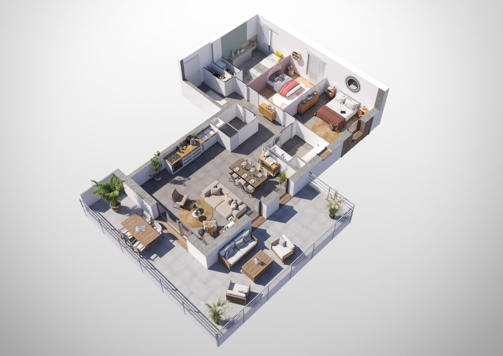 Côté intérieur, les appartements du 2 au 4 pièces font la part belle aux espaces lumineux pour un confort absolu. Idéalement orientées à l’Est ou à l’Ouest, les pièces de vie sont baignées d’une lumière naturelle tout au long de la journée. Ancré dans l’air du temps, chaque logement est agencé autour d’une belle cuisine ouverte sur séjour où les plaisirs de la table se mêlent aux moments de partage en famille ou entre amis.
