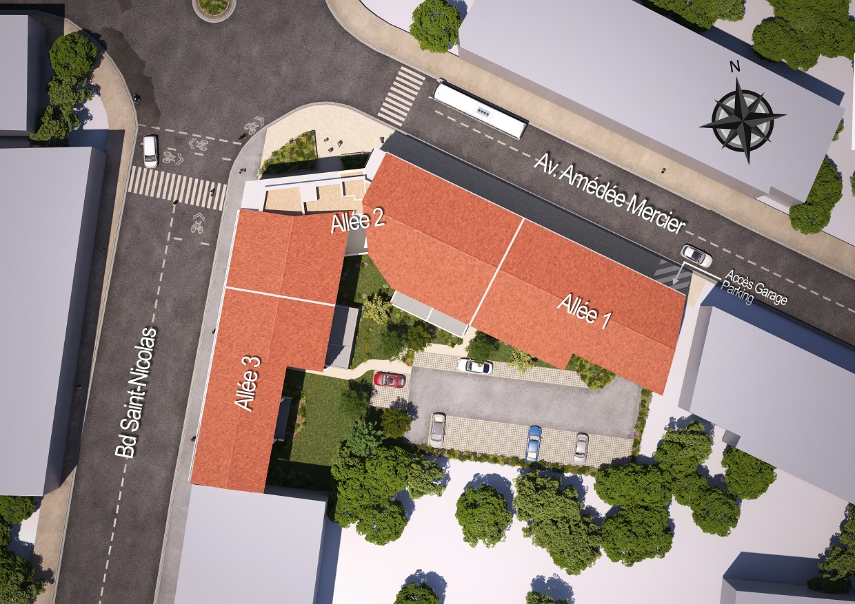 A deux pas du centre-ville de Bourg en Bresse, la Résidence Les Portes du Maquis tient son nom de la place qu’elle surplombe. 20 logements sont proposés à la vente avec une très grande majorité donnant sur le cœur d’ilot paysagé.