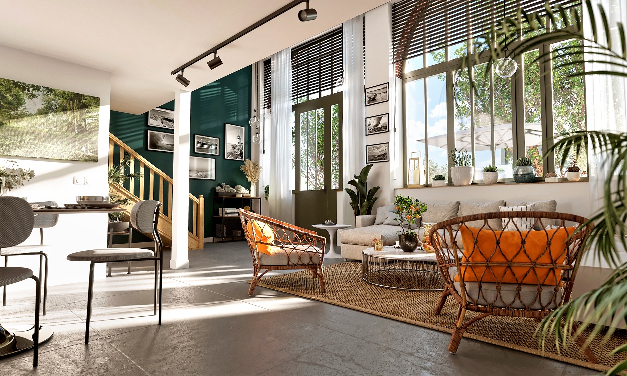 Quatre maisons, du T4 au T5, sont aménagées dans le bâtiment historique entièrement rénové. Organisées en triplex avec mezzanine, et grande pièce de vie lumineuse au RDC, chaque maison dispose d’un jardin privatif. Les surfaces sont généreuses pour vivre confortablement en famille ou pour recevoir ses amis.